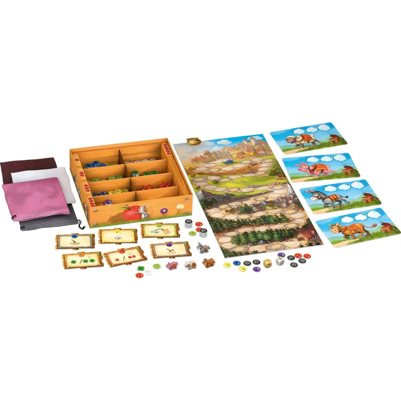 Kutija igre sadrži dvostranu tablu za igru, 4 figurice životinja, 4 karte životinja, 6 dvostranih karata akcija, 2 kockice, 1 zlatni kotao, 4 vrećice, 40 rubina, 26 čipova detelina, 162 čipa hrane, 18 crnih čipova Uspavljujuće biljke i pravila igre.